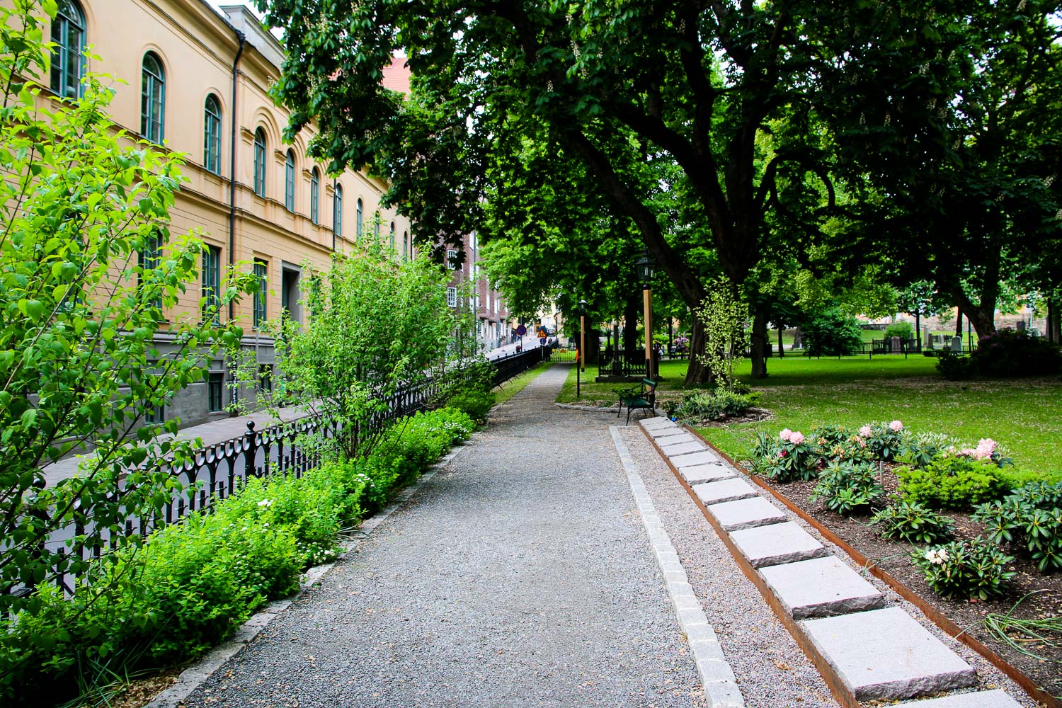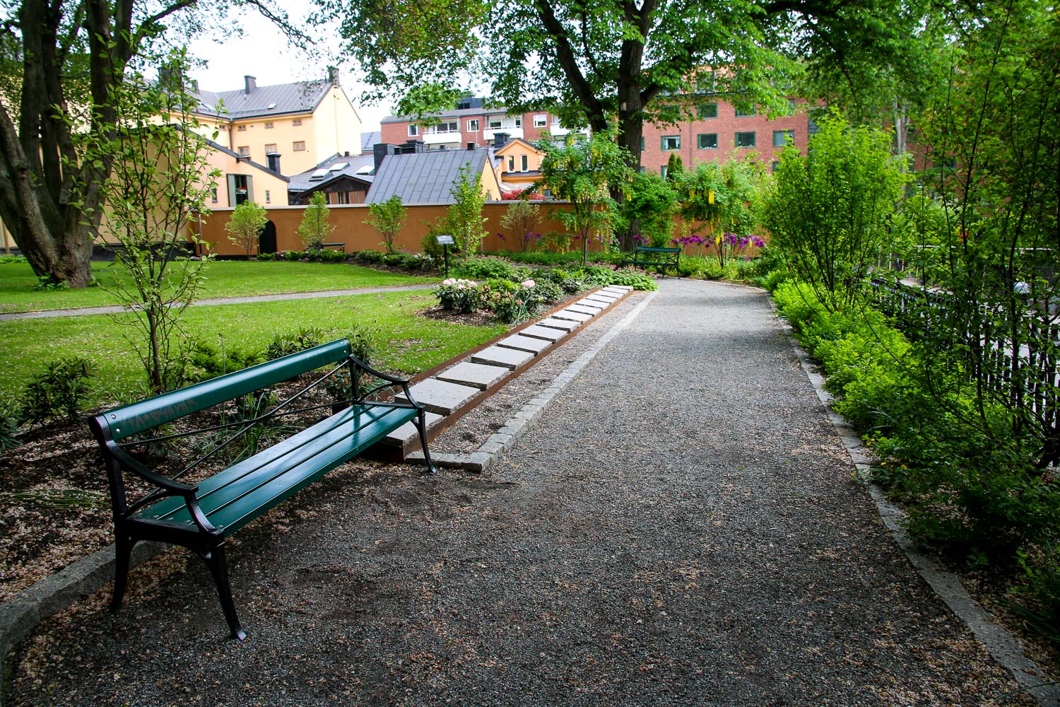 Katarina kyrkogårds nya askgravplats har skapats för att ge möjlighet till att jordfästa aska och att sätta upp en minnesbricka för den jordfäste. Idén bakom gestaltningen grundar sig i att inte konkurrera med den befintliga, intilliggande och formstarka minneslunden och samtidigt sammanfoga dess formspråk med den kulturhistoriskt värdefulla miljön.