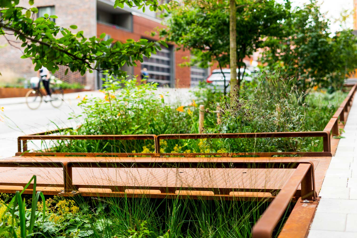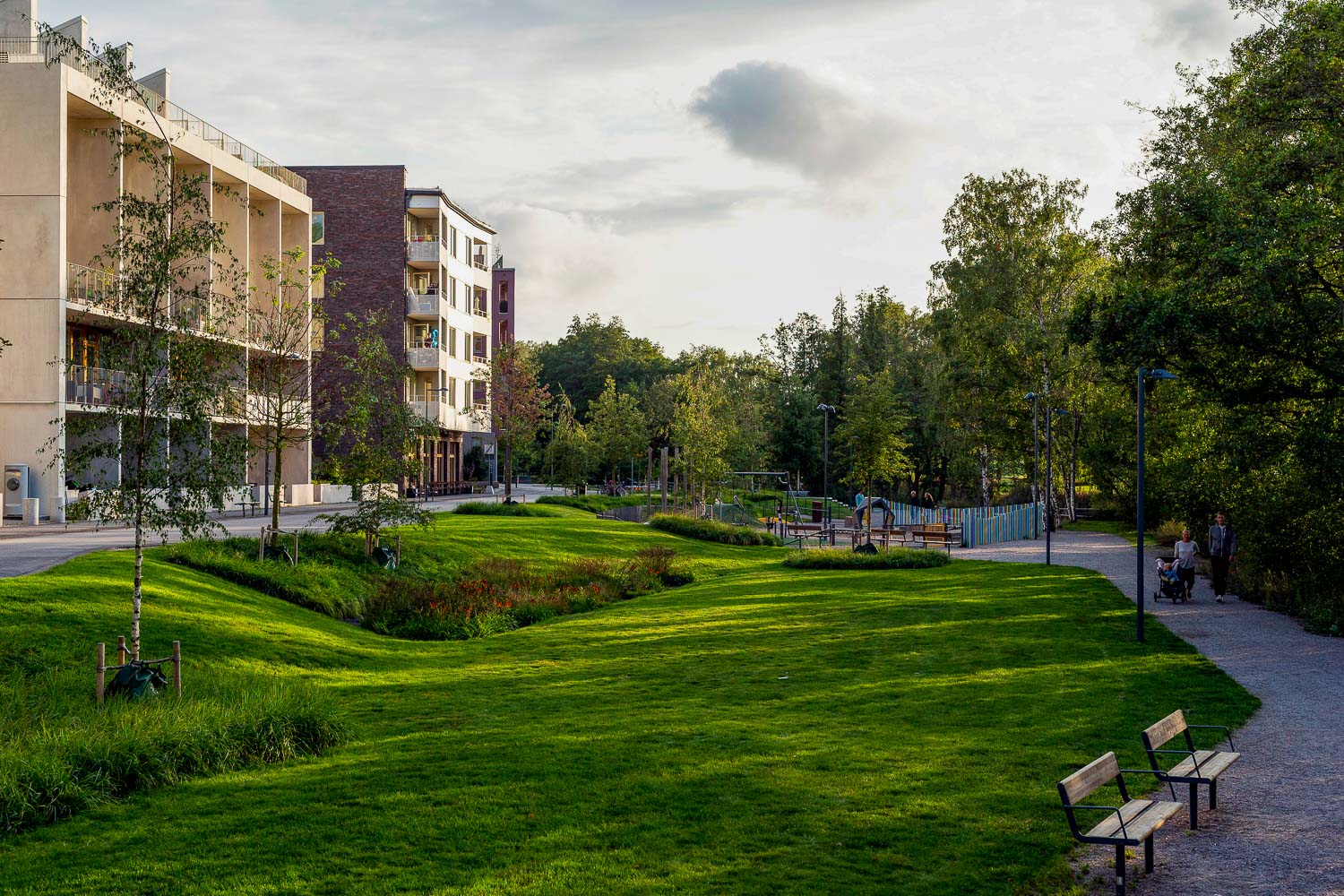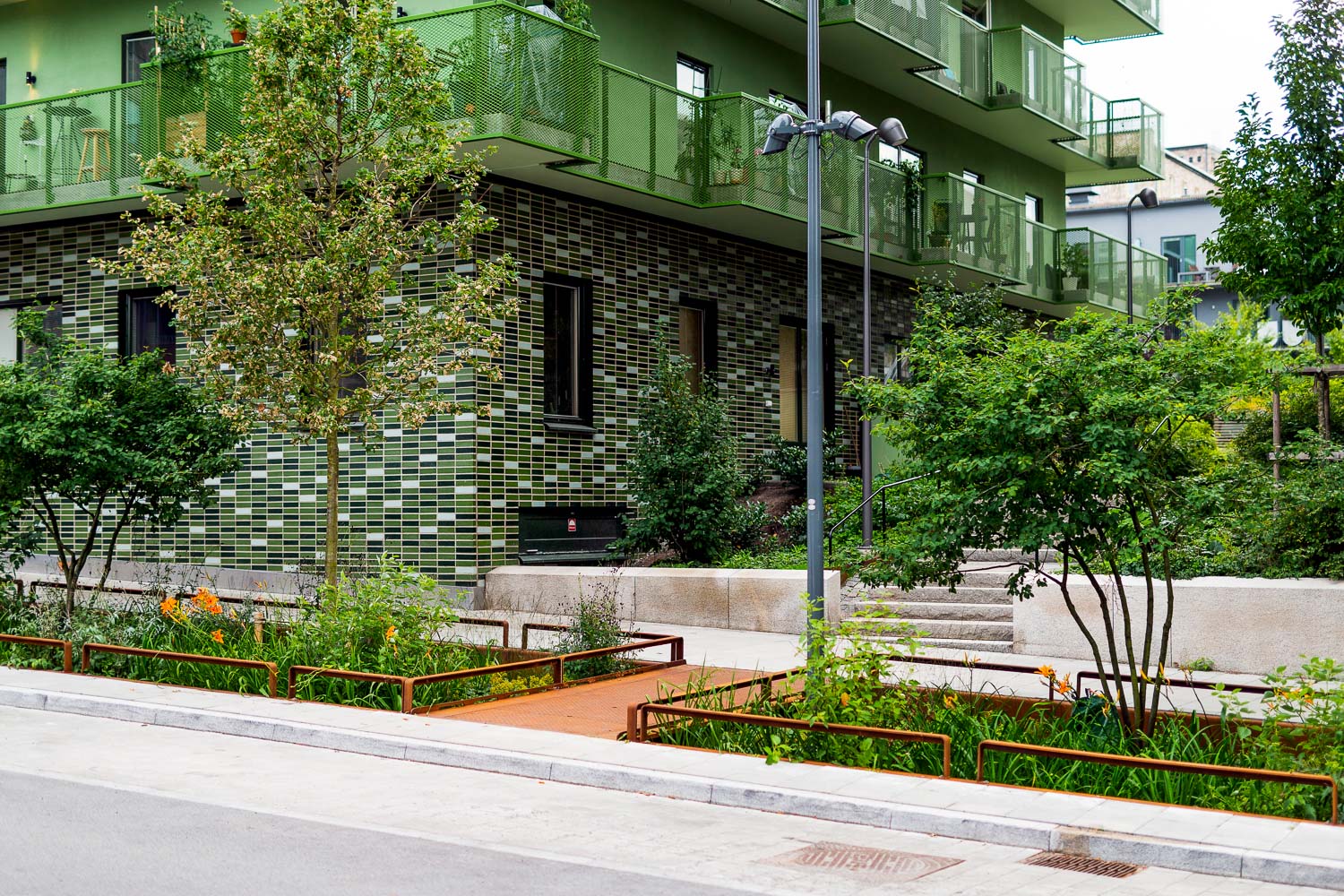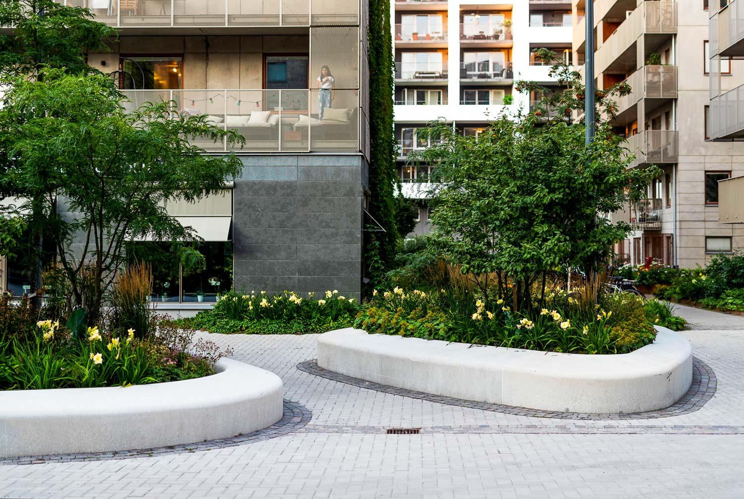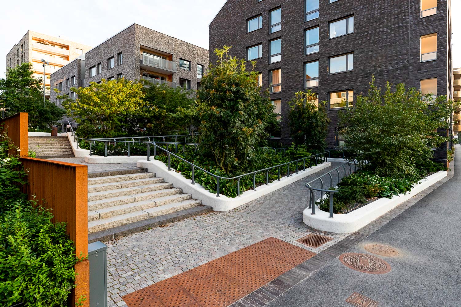 Parker gator och torg har gestaltats med stor omsorg om detaljer för att ge höga arkitektoniska värden.