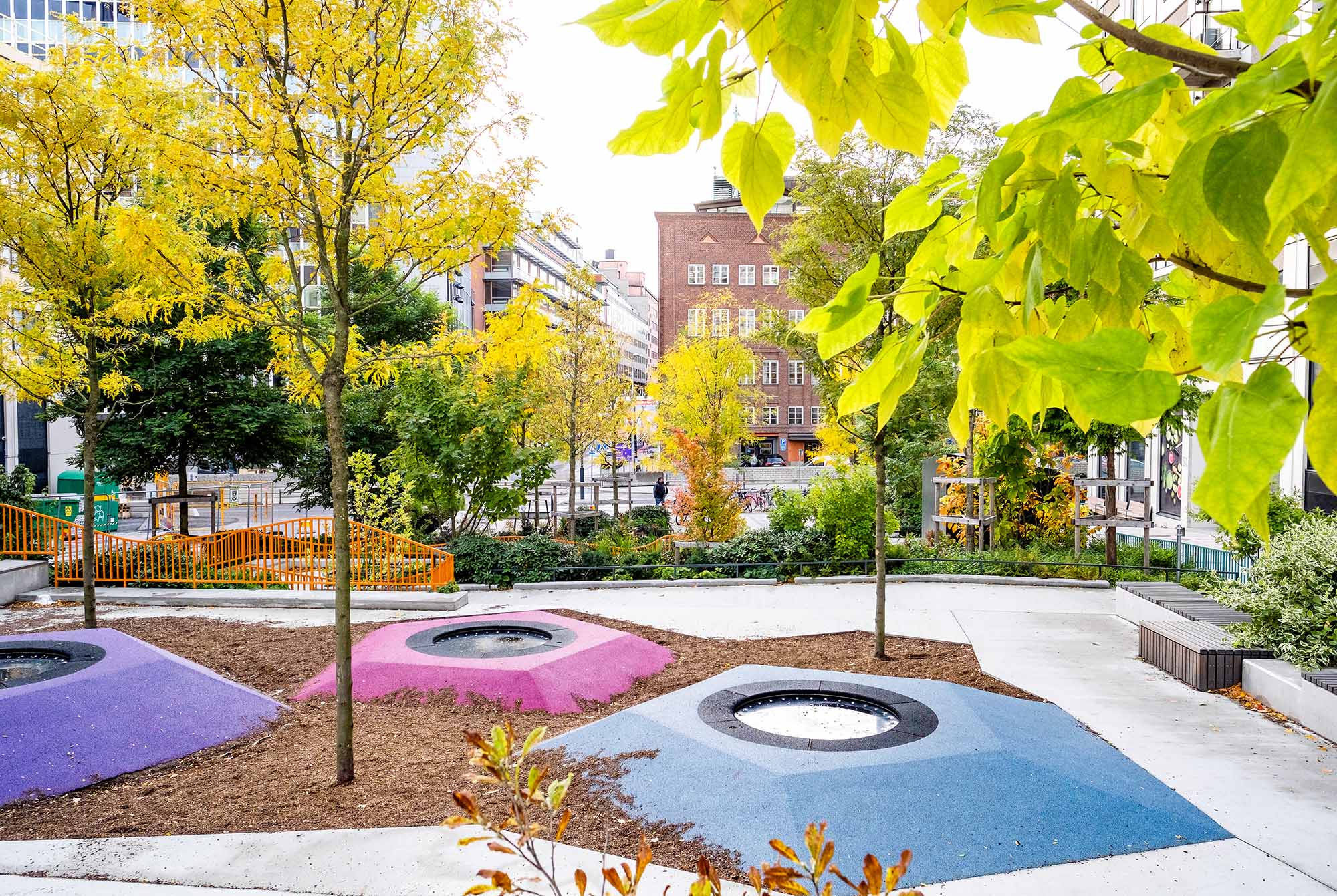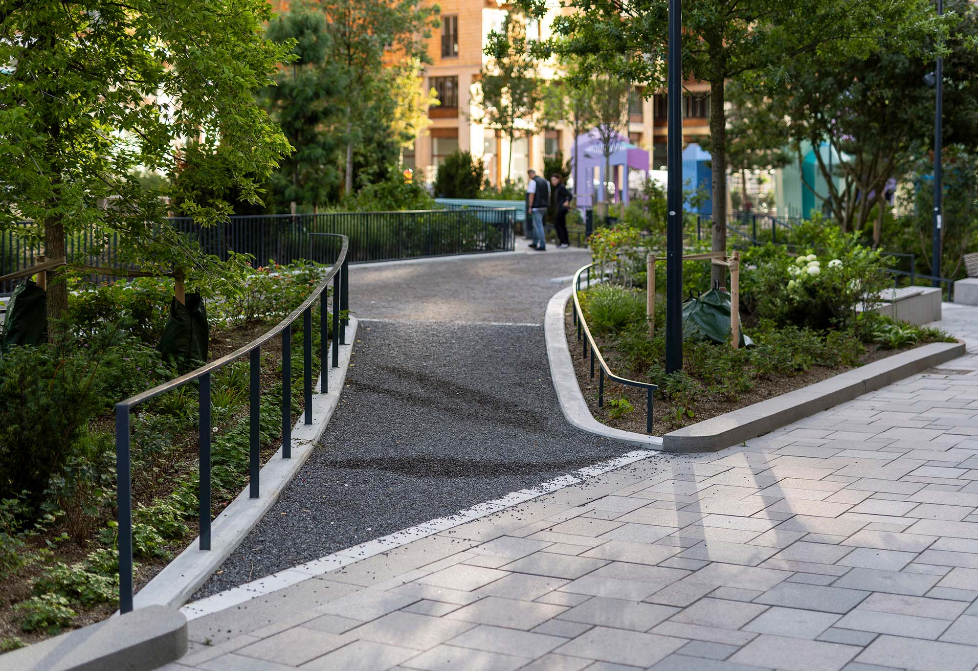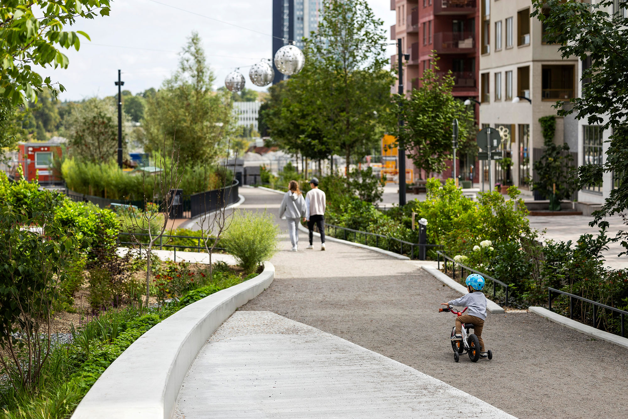Delar av den nord-sydliga delen av parken är redan anlagd och är utformad som en serie tydliga rektangulära terrasserade lek- aktivitets- och parkytor för olika åldersgrupper. Den sluttar sluttar kraftigt Från norr till söder och tar upp en höjdskillnad på fem meter. Genom parken slingrar sig ett rampsystem som ökar tillgängligheten. Mellan ramperna skapas parkrum med aktivitetsbaserat innehåll.
