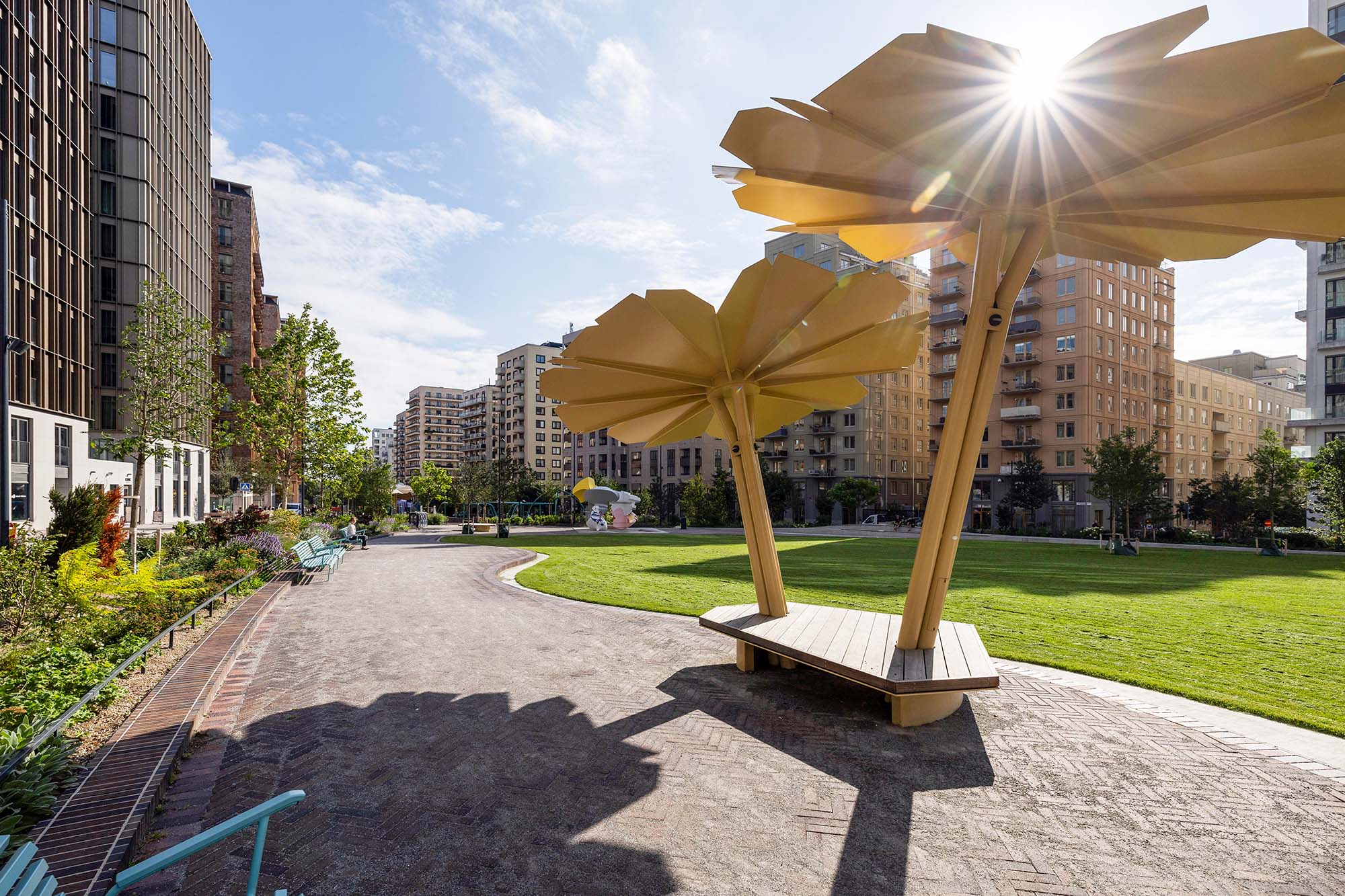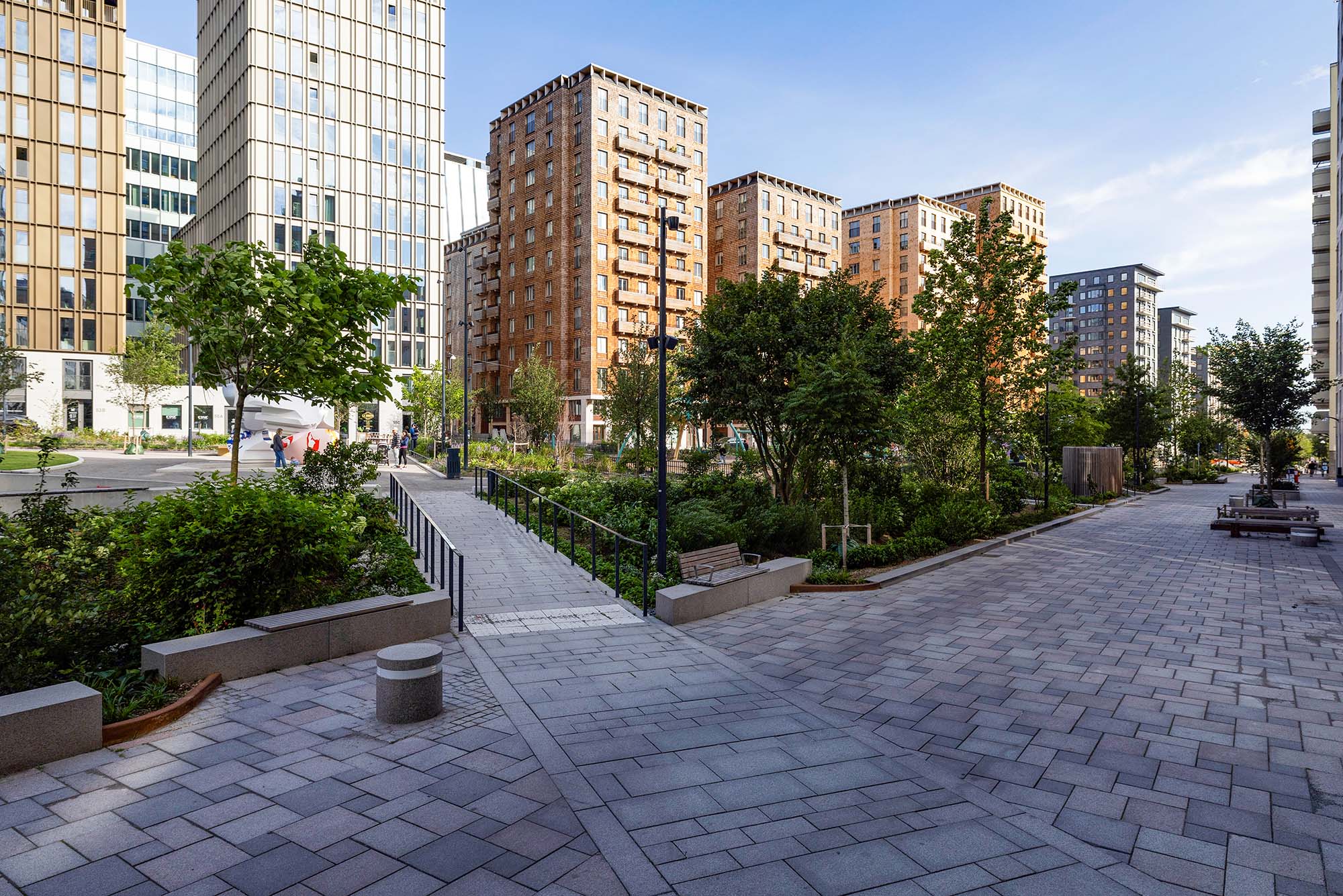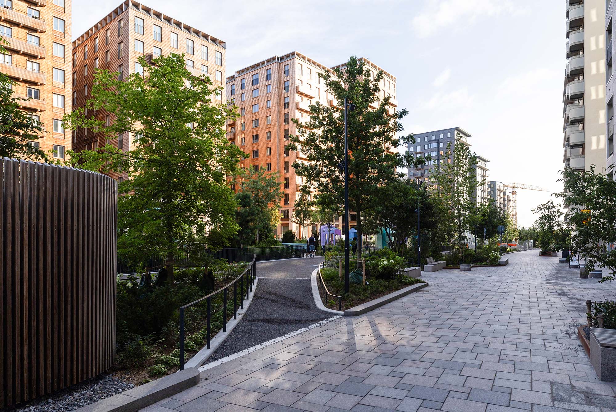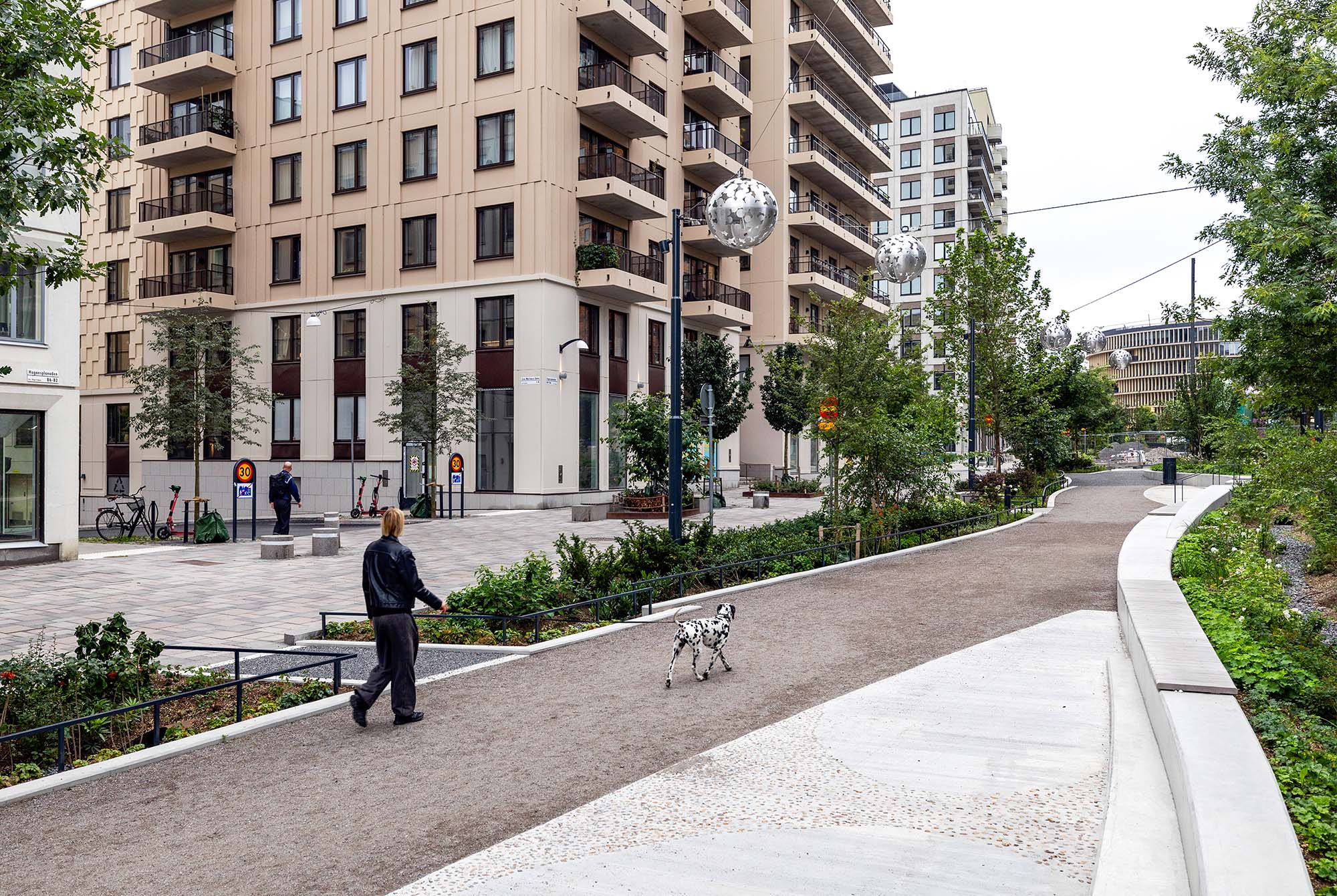 Delar av den nord-sydliga delen av parken är redan anlagd och är utformad som en serie tydliga rektangulära terrasserade lek- aktivitets- och parkytor för olika åldersgrupper. Den sluttar sluttar kraftigt Från norr till söder och tar upp en höjdskillnad på fem meter. Genom parken slingrar sig ett rampsystem som ökar tillgängligheten. Mellan ramperna skapas parkrum med aktivitetsbaserat innehåll.