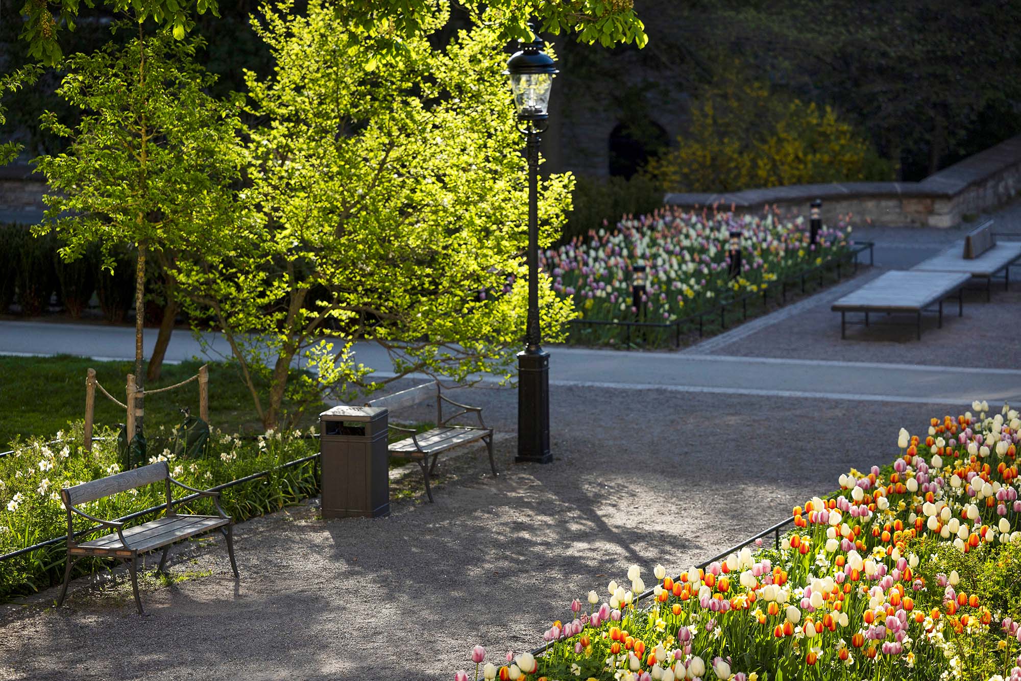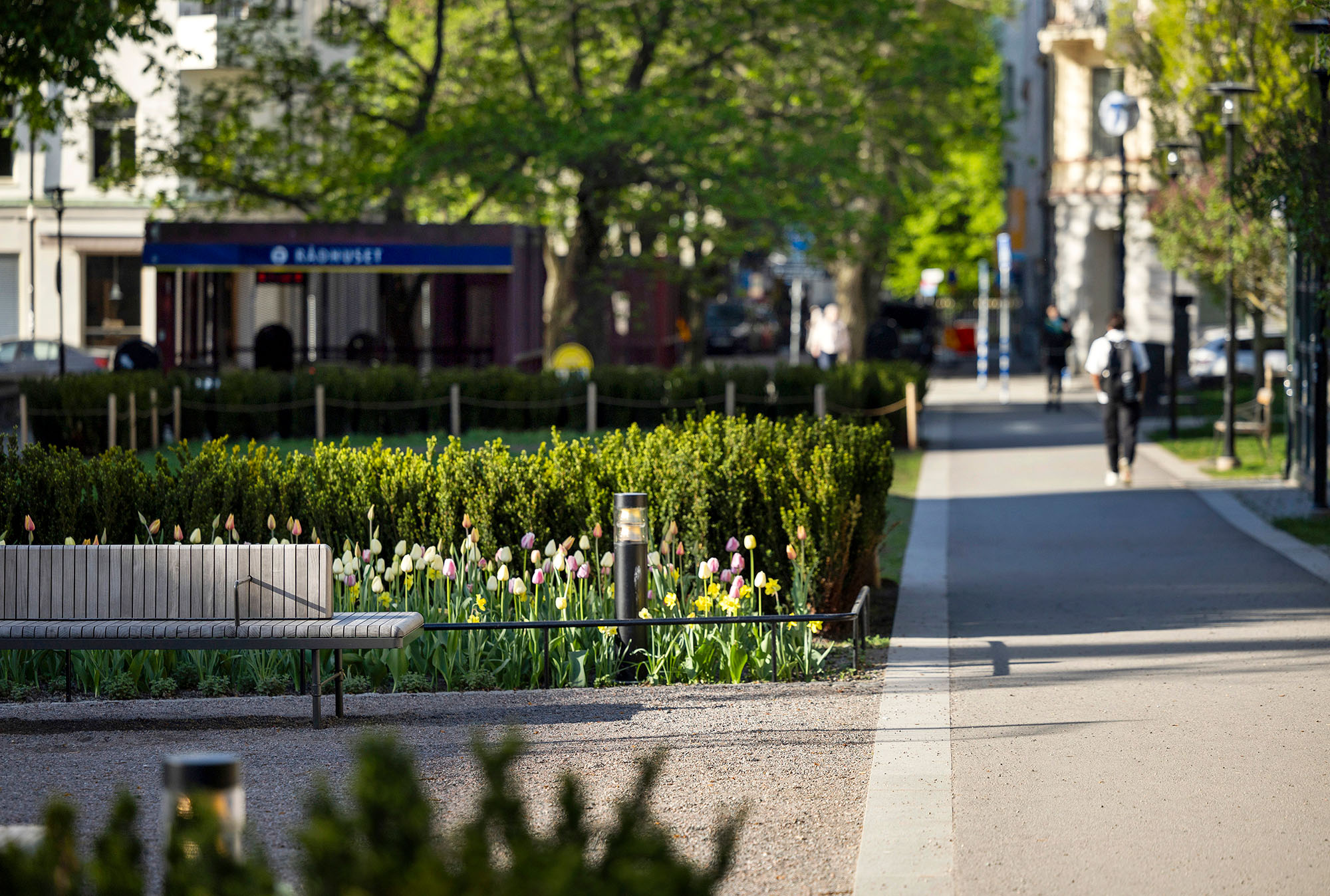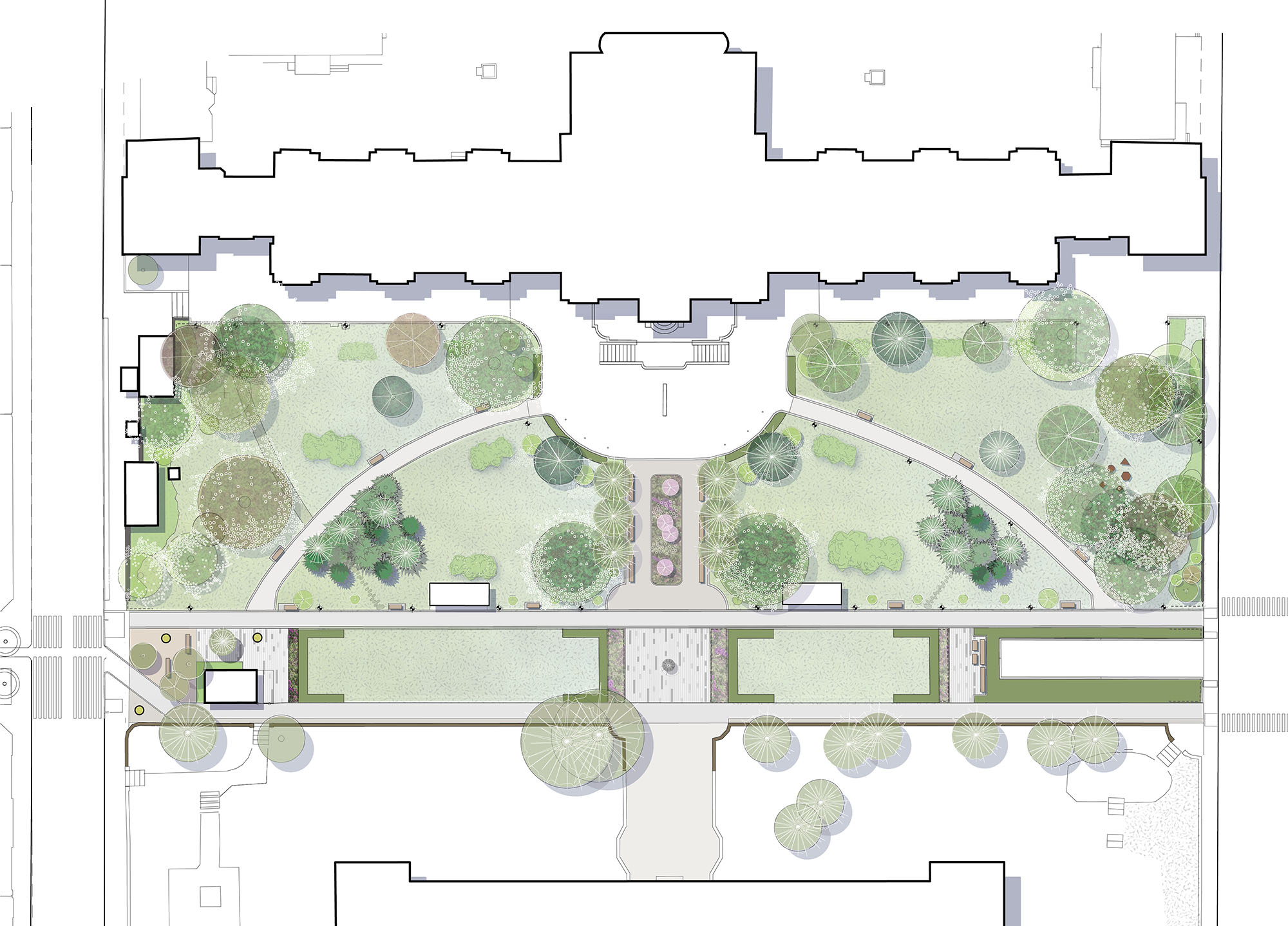 Arbetet har inneburit en utmaning i att värna och lyfta fram den ursprungliga karaktären, symmetrin i parken, de två mötandes axlarna och kontrasten mellan de mjuka formerna i parkens äldre och de striktare formerna i parkens nyare del. Historiska kartor har varit underlag gestlatningen och val av växtmaterial.