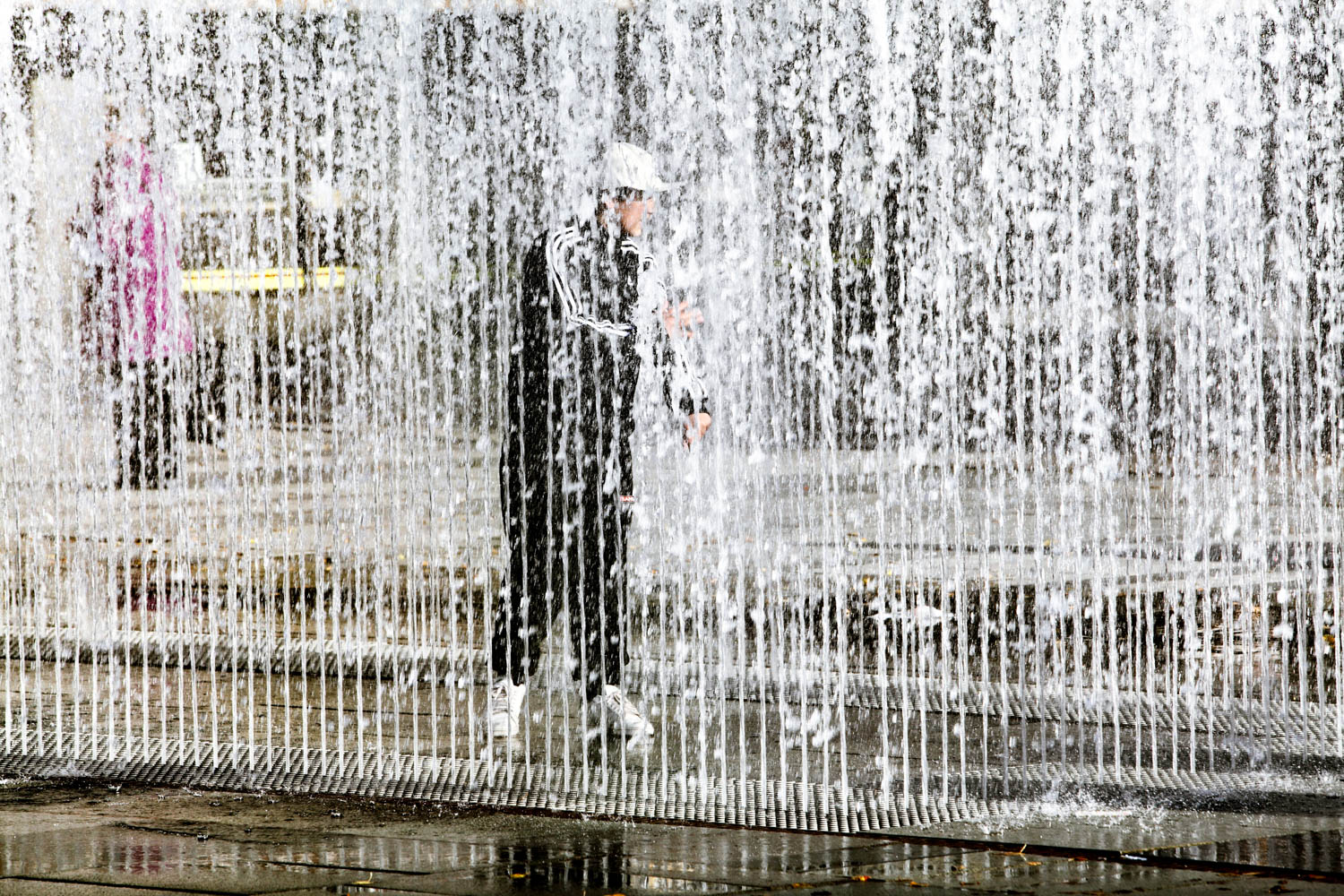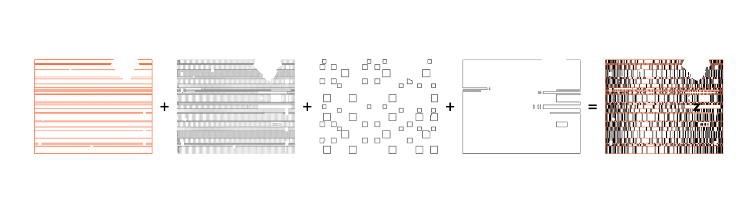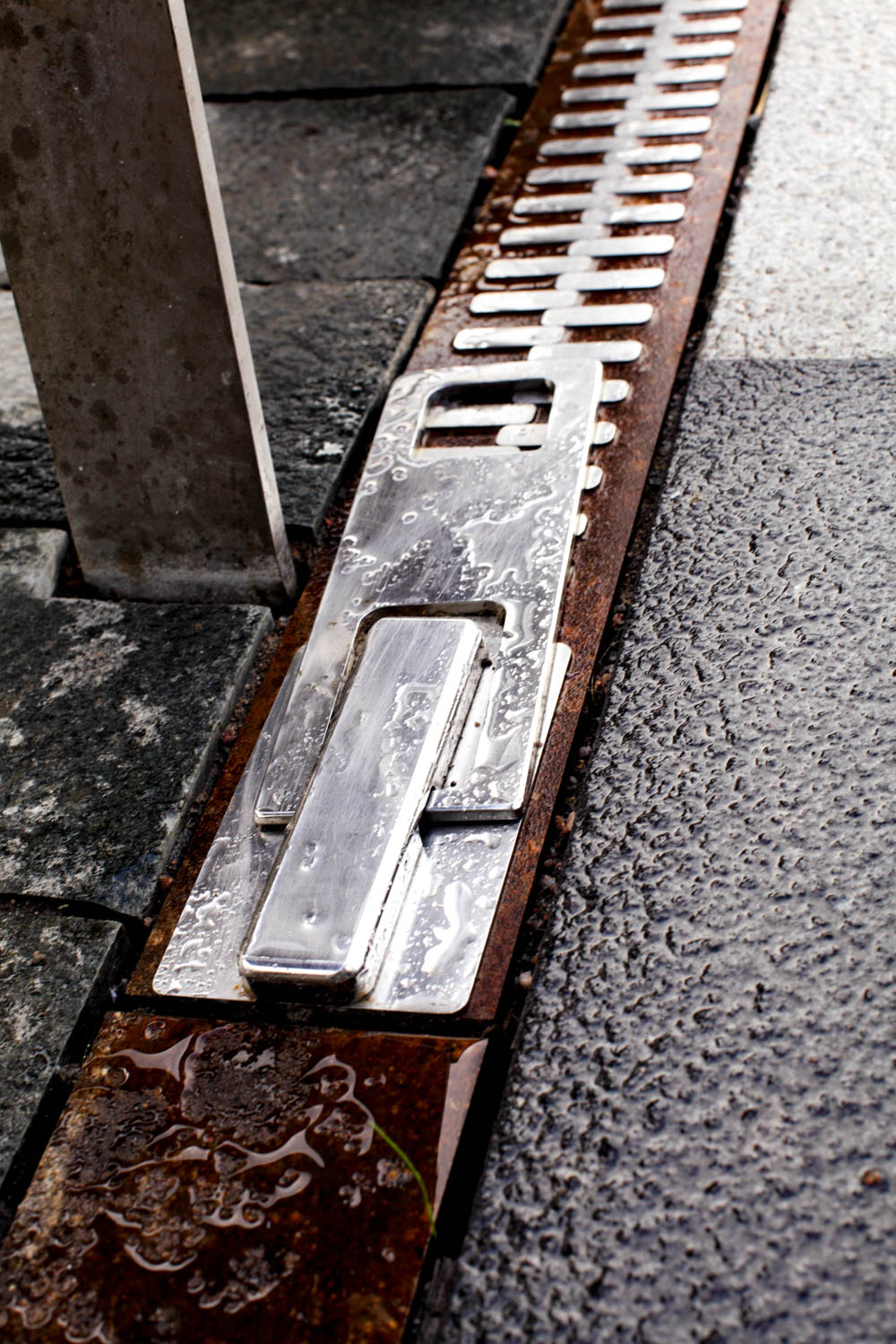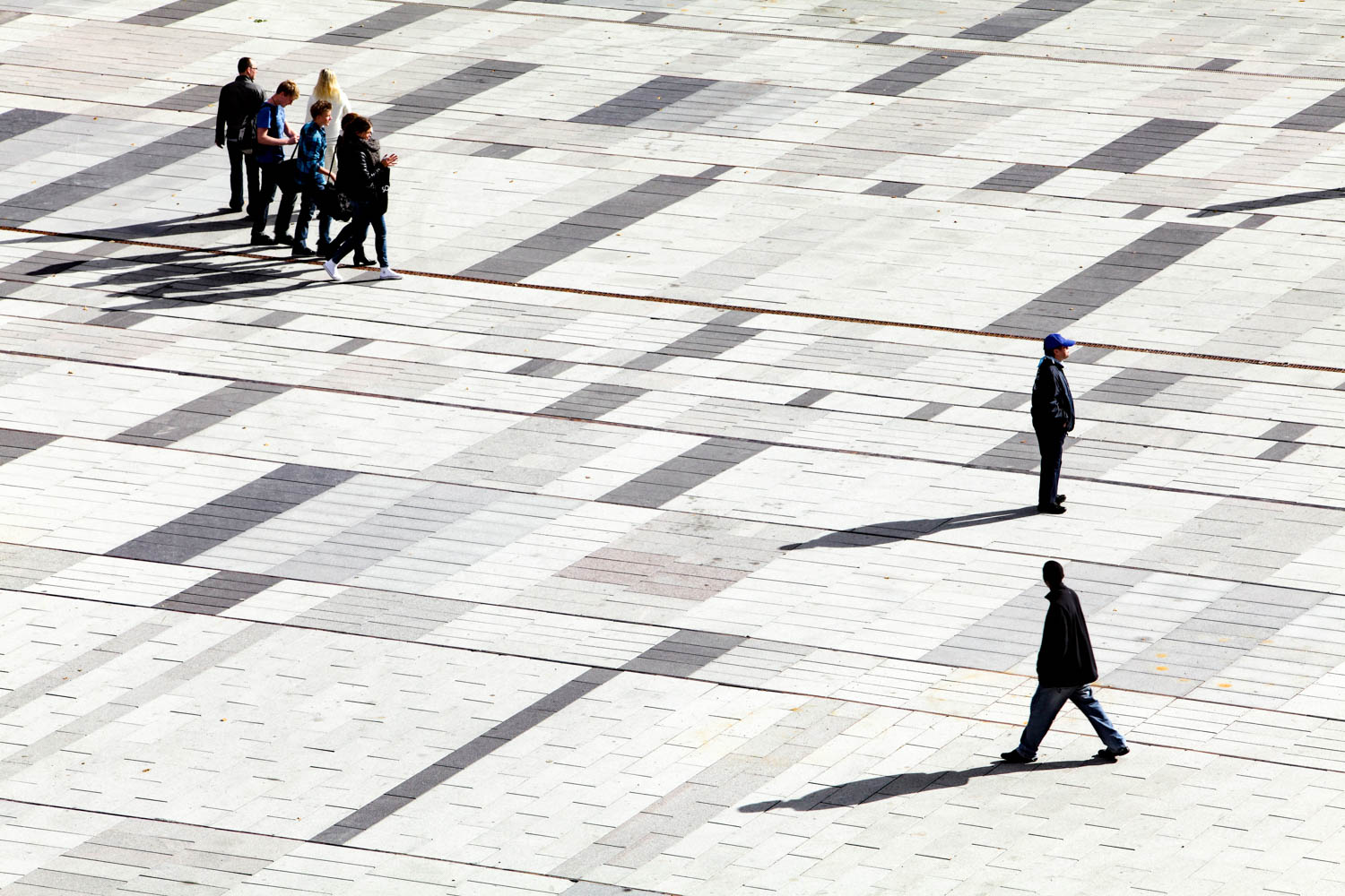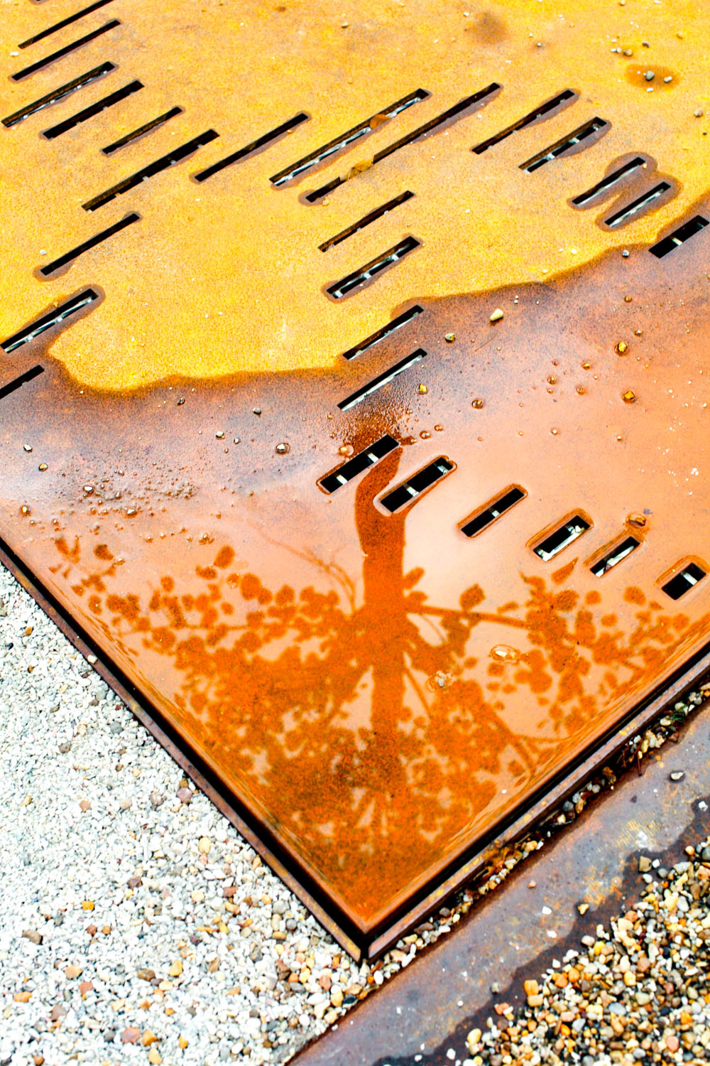 Centralt på torget ligger en slät, rektangulär yta, en väv av granithällar i olika nyanser och ytbearbetningar. Tre granitsorter med två olika ytbearbetningar, flammad och krysshamdrad, ger sex olika nyanser som gör att golvet växlar uttryck beroende av ljus och väderlek. Band av rosttrögt stål med olika bredd delar in mattan i olika fält. Stålbanden är vävens varp, den längsgående tråden i en vävd matta.