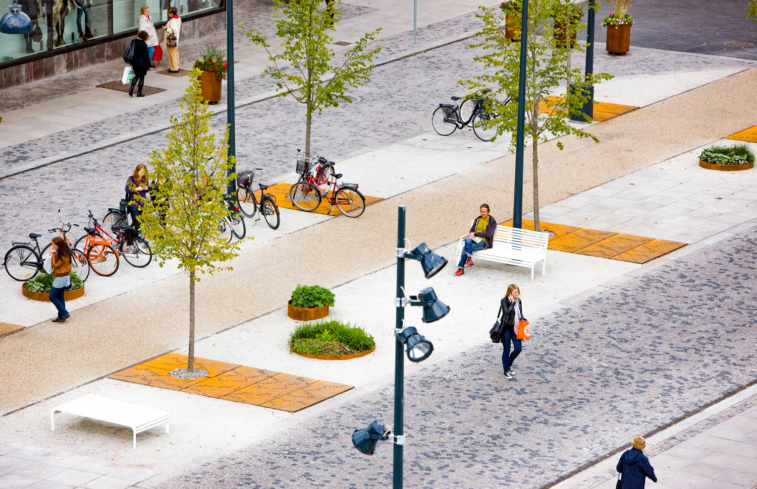 Stortorget är en del av en komplex innerstadsmiljö där många olika funktioner ska kunna samsas sida vid sida. Stor vikt har lagts vid torgets möblering och golv av naturstensbeläggningar som kännetecknas av detaljrikedom och precision.